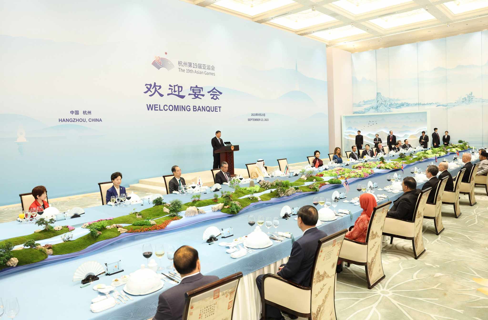 १९ औँ एसियाली खेलकुदको उद्घाटन समारोहमा माग लिन आएका पाहुनालाई स्वागत गर्दै सीले भने, ‘हामी एसिया ओलम्पिक काउन्सिल र विभिन्न देश र क्षेत्रका प्रतिनिधिमण्डलहरूसँग मिलेर चिनियाँ विशेषता एसियाली शैली र भव्यताको सहितको खेल प्रतिगोयतामा विश्वसामु प्रस्तुत गर्न चाहन्छौँ ।