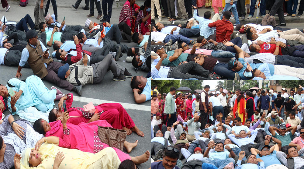 बुधबारदेखि देशभरबाट सामुदायिक विद्यालयका शिक्षकहरू काठमाडौं केन्द्रित भएर आन्दोलन गरिरहेका भएपनि सरकारसँगको सहमतिमा आफ्ना एजेण्डा सुनुवाइ नभएको भन्दै उनीहरूले महासंघ र सरकारबीच भएकाे सहमती मान्य नहुने भन्दै आज बबरमहल(माइतीघर सडकमा सुतेर विरोध जनाएका छन् ।