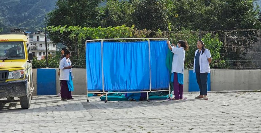 मंगलबार दिउँसो भूकम्प गएको बेलामा तलकोट गाउँपालिका–१ की ती महिलालाई अस्पतालको प्राङ्गणमै सुत्केरी गराइएको हो।