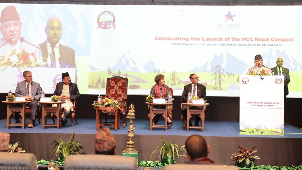काठमाडौं । प्रधानमन्त्री पुष्पकमल दाहाल ‘प्रचण्ड’ले संयुक्त राज्य अमेरिकी सहयोग परियोजना मिलेनियम च्यालेञ्ज कर्पोरसन (एमसीसी) ले नेपाल र अमेरिकाबीच आर्थिक साझेदारीको नयाँ ढोका खुलेको बताएका छन् ।