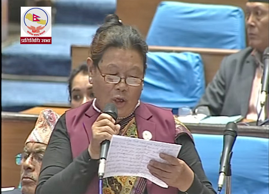 उनले संसदमा पूर्वप्रधानमन्त्रीलाई दिने गरिएको असिमित समयको दुरुपयोग भएको भन्दै पूर्वप्रधानमन्त्रीका लागि पनि समय निर्धारण हुनुपर्ने बताइन् । उनले भनिन् -‘सम्मानित सदनलाई सार्वभौम र गरिमामय बनाउने हो भने उहाँहरुले बोल्दा पनि समय निर्धारण गर्न आवश्यक छ । सभामुखको ध्यानाकर्षण होस् ।’
