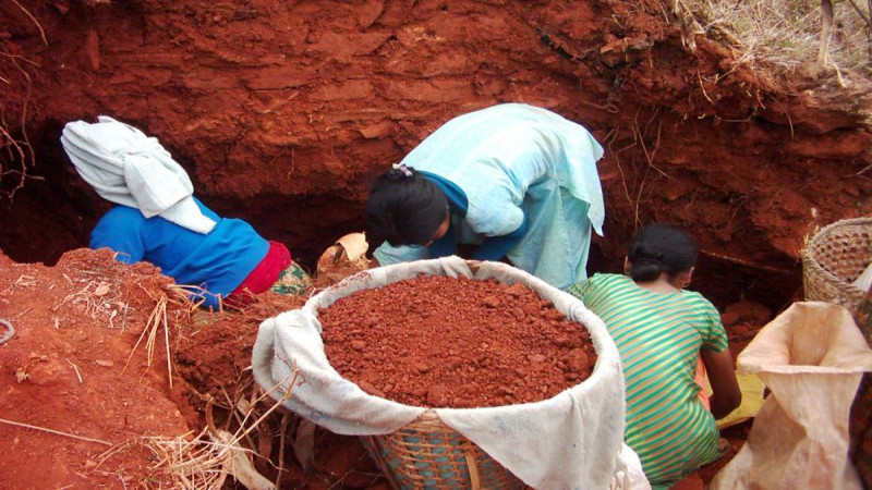‘कमेरे र पहेँलो चिम्टिलो माटो खोज्न नदी गहिरिएको डिल र पुराना पोखरी खोज्नुपर्छ, रातो माटो लिन चुरे नै पुग्नुपर्छ’ सखारै १० जनाको समूहमा रातो माटो खन्न १५र१६ किलोमिटर छिचोलेर बर्दिबास–३ को चुरे थुम्को पुगेका भङ्गाहा नगरपालिका–३ टिकुलिया बस्तीकी हेमकली चौधरी भन्छिन्, ‘यही मेहनतले आफ्नो घर पोत्न र दशैं खर्चको नगद जोहो गर्न माटो लगिन्छ ।’ रातो माटो एक बोरा ९४० किलो० घर पुर्याउन सके आफ्नो घर पोतेर नगद आर्जन गर्न पाइने उनी बताउँछिन् ।