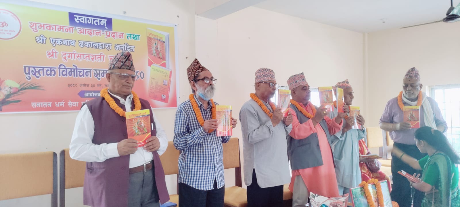 विराटनगर । सरल नेपाली भाषामा लेखिएको दुर्गासप्तशती चण्डीको मंगलबार विराटनगरमा विमोचन गरिएको छ । संस्कृत भाषामा सात सय श्लोकमा लेखिएको मूल गन्थ्रलाई नेपालीमा पनि जस्ताको तस्तै (छायाँ ) अनुवाद गरिएको सो पुस्तकको विमोचन गरिएको हो ।