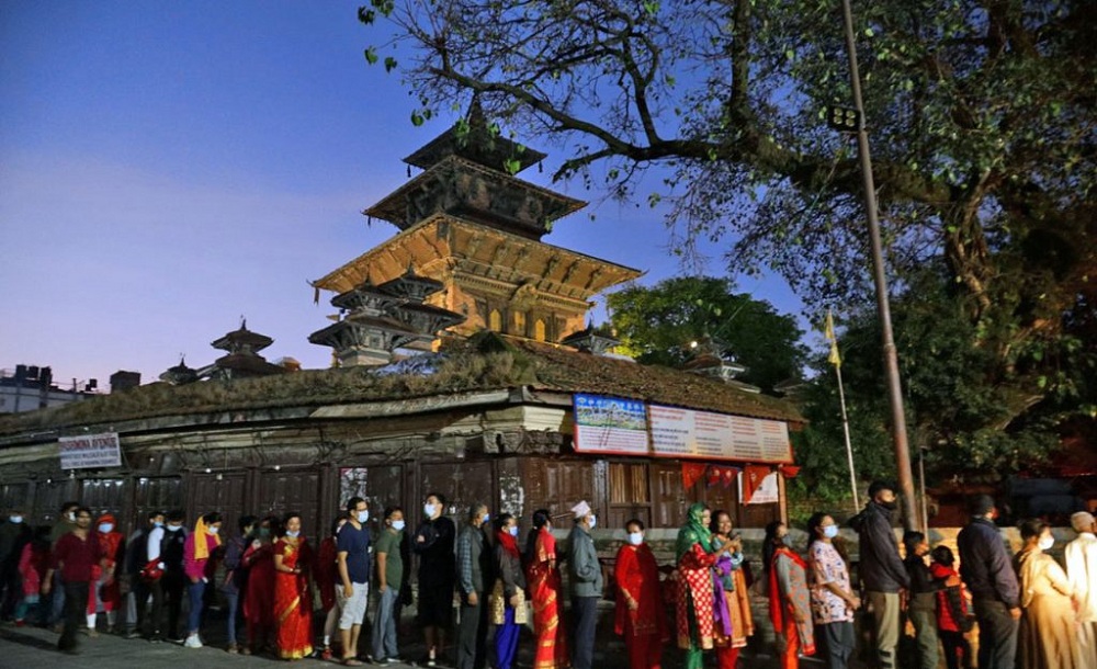काठमाडौं । हनुमानढोका दरबार क्षेत्रमा रहेको तलेजु भवानीको मन्दिरमा मन्दिर दर्शन तथा पूजाअर्चनाका लागि भक्तजनहरु बिहानैदेखि लामबद्ध भएका छन् ।