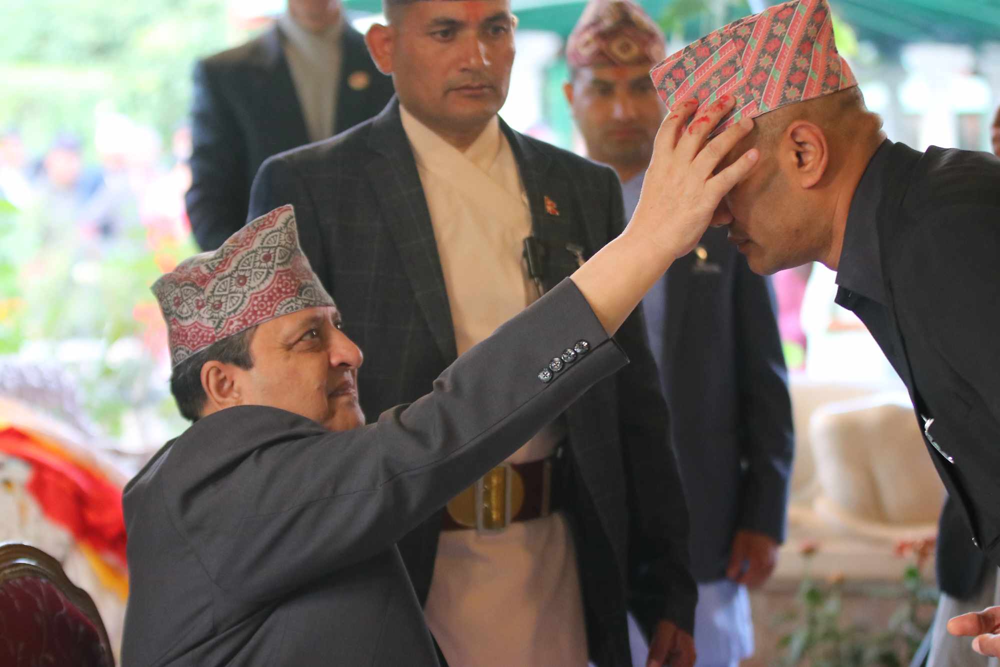 काठमाडौं । पूर्वराजा ज्ञानेन्द्र शाहले सर्वसाधारणलाई दसैँको टीका लगाइदिएका छन् । मंगलबार अपरान्ह ४ बजेबाट टीका लगाउन इच्छुकका लागि खुला गरिएको निर्मल निवासमा सर्वसाधरणलाइ टीका लगाएका हुन् ।