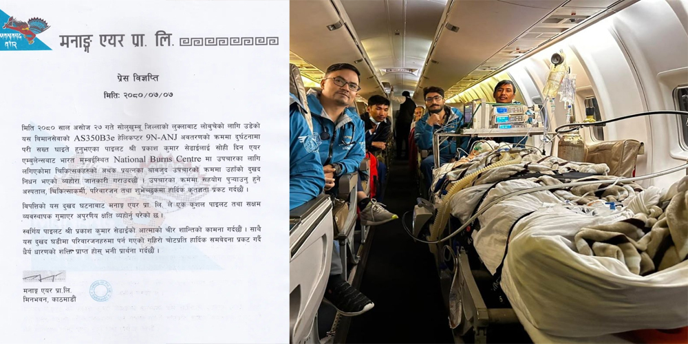 हाइ अल्टिच्युडमा रहेका यात्रु ल्याउन गएको मनाङ एयरको हेलिकप्टर असोज २७ गते बिहान ७ बजेर १३ मिनेटमा सोलुखुम्बुमा दुर्घटनाग्रस्त भएको थियो।