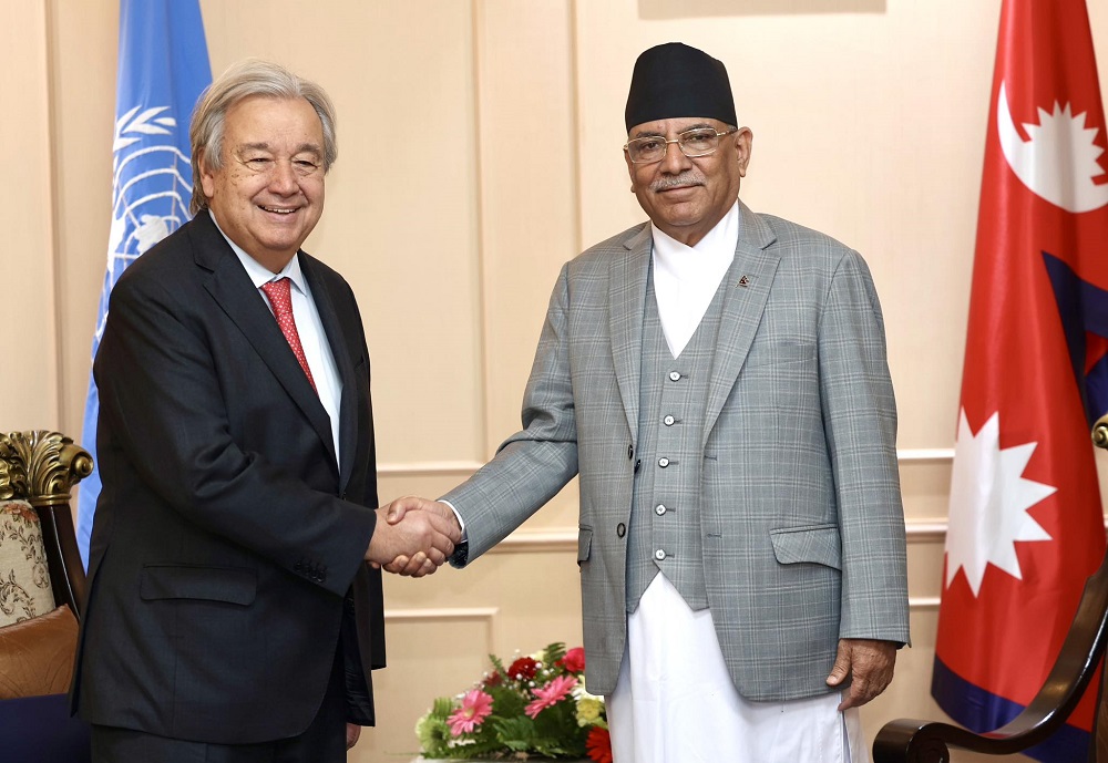 काठमाडौं । प्रधानमन्त्री पुष्पकमल दाहाल प्रचण्ड र संयुक्त राष्ट्र संघका महासचिव एन्टिनियो गुटेरेसबीच भेटवार्ता भएको छ ।