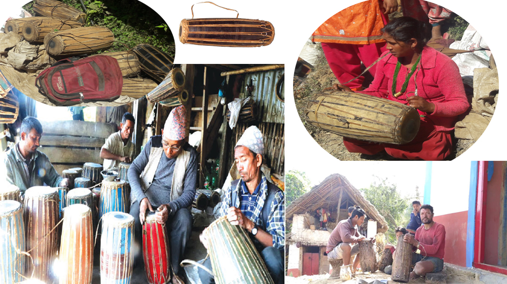 धनकुटा । धनकुटा नगरपालिका–१, हिलेका छविलाल सार्कीको घरमा अहिले जताततै मादल मात्रै देख्न पाइन्छ । घरको बाहिरी भाग होस् वा भित्री कोठा, कतै मादल झुन्डिएका छन् त कतै लडिरहेका छन् । कुनै बन्ने क्रममा छन् त कुनै बनिसकेका छन् । कुनै बनाउनका लागि कच्चा अवस्थामा छन् ।