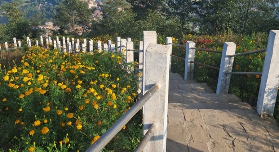 किरातको ऐतिहासिकस्थल मझुवागढी, प्रसिद्ध कालिका भगवती मन्दिर, दुद्येश्वर गुफा लगायतको धार्मिक तथा पर्यटकीय स्थल रहेको उक्त क्षेत्रमा जान फलामे रेलिङ निर्माण गरिएको छ । दिक्तेल बजारस्थित हाडडाँडाबाट उक्त क्षेत्र पुग्न हिडेर करिब ४५ मिटेन लाग्छ । माथिसम्म पुग्न जाने फलामे रेलिङसहितको पदमार्ग निर्माण गरिएको छ । सोही पदमार्गको दायाँबायाँ रोपिएका फूलहरु फुलेर यतिबेला ढकमक्क भएका छन् ।