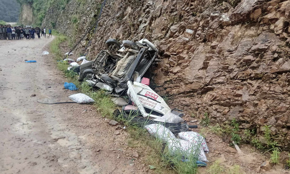 ट्याक्सी सडकबाट एक सय मिटर तल खसेको थियो । दुवै जनाको घट्नास्थलमै मृत्यु भएको प्रहरीले जनाएको छ ।