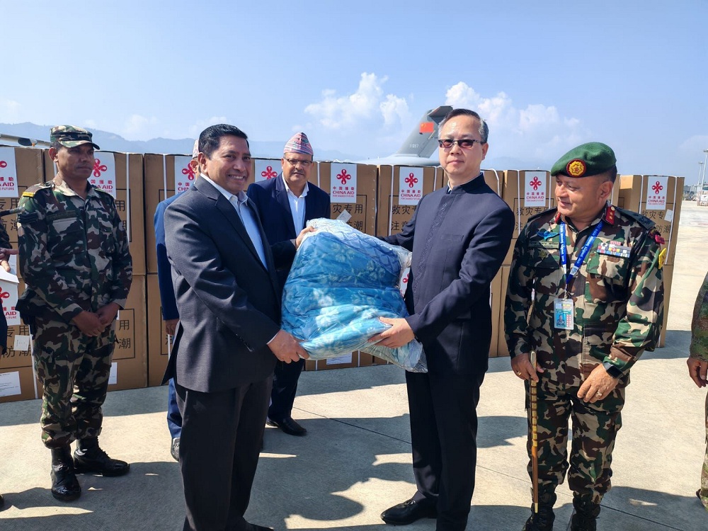 दुईवटा एयरक्राफ्टबाट चार हजार ६ सय ब्लाङ्केट र ६ सय टेन्ट आएको छ। यता केरुङ नाका हुँदै चिनियाँ सरकारले झन्डै १० करोड बराबरको २३ ट्रक छुट्टै राहत सामाग्री पठाएको छ, जसमा २ हजार तीन सय टेण्ट, दुई हजार ब्लाङ्केट, सात सय टर्पलिन, पाँच सय वटा महामारी रोक्ने स्पेयर र साँढे १० हजार वटा लामखुट्टे मार्ने औषधि छन्। बुधबार बिहान काठमाडौं आइपुगेको उक्त सामाग्री तत्काल प्रभावित क्षेत्रमा पठाइनेछ भने पोखरा आएको सागाग्री पनि प्रभावित क्षेत्रमा पठाउने तयारी छ।
