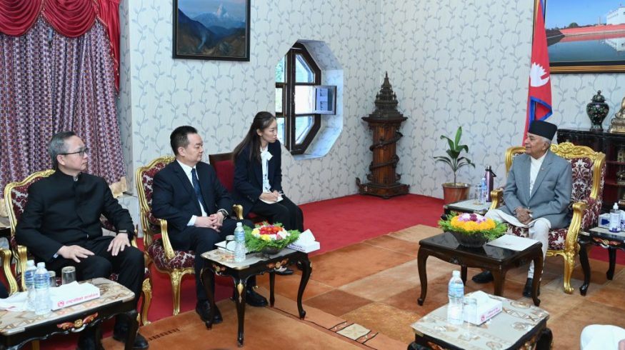 काठमाडौँ । राष्ट्रपति रामचन्द्र पौडेलसँग जनवादी गणतन्त्र चीनको स्वशासित क्षेत्र तिब्बतका सचिव वाङ जुनझेङ नेतृत्वको प्रतिनिधिमण्डलले शिष्टाचार भेट गरेको छ । राष्ट्रपति भवनमा आज भएको भेटमा दुई देशबीचको सम्बन्ध र आपसी हित र चासोका विषयमा छलफल भएको राष्ट्रपतिको कार्यालयले जनाएको छ ।