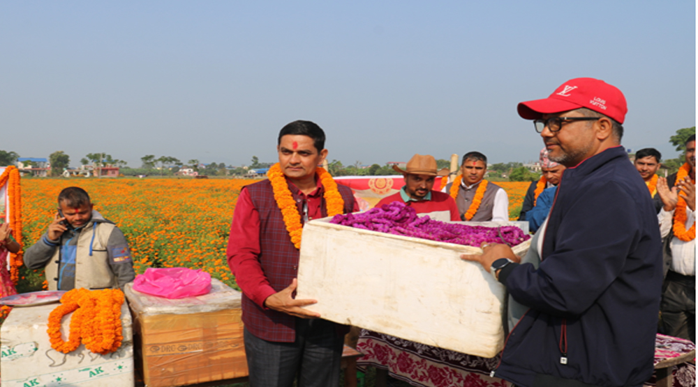 भरतपुर । चितवनमा उत्पादित सयपत्री र मखमली फूल हङकङ निर्यात गरिएको छ । कालिका नगरपालिका-२ पदमपुरका तीन जना दाजुभाइले उत्पादन गरेको एक हजार तीन सय माला र दुई क्विन्टल खुद्रा फूल बिहीबार हङकङ पठाइएको हो ।