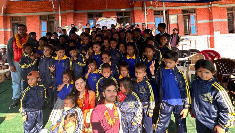 नुवाकोट । नुवाकोटको बेलकोटगढी नगरपालिका, वडा नम्बर १२ स्थित भृकुटी माध्यमिक विद्यालयका पूर्वविद्यार्थीले उक्त विद्यालयमा अध्ययनरत विद्यार्थीलाई न्यानो कपडा वितरण गरेका छन् । उक्त विद्यालयका पूर्वविद्यार्थी उद्धव खनाल र विष्णु खनालले त्यहाँ अध्ययनरत शिशु कक्षादेखि १० कक्षासम्मका विद्यार्थीलाई एक–एक सेट न्यानो कपडा सहयोग गरेका हुन् ।