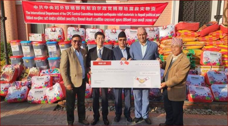पार्टीको केन्द्रीय समितिको अन्तर्राष्ट्रिय विभागले नेपाली राजनीतिक दललाई आज साँझ यहाँ रु दुई करोड ७४ लाख ७५ हजार बराबरका राहत सामग्री उपलब्ध गराएको हो।