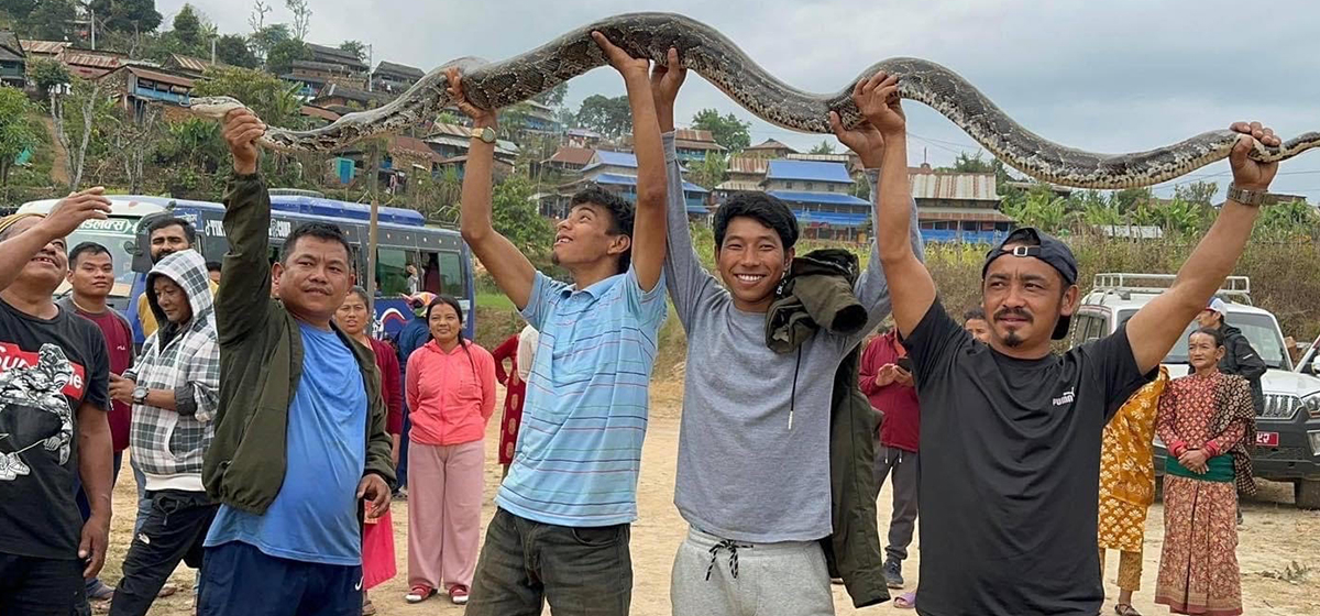 काठमाडौं । तनहुँको व्यास नगरपालिका–१४ स्थित रुम्सीमा अजिङ्गर फेला परेको छ । स्थानीयवासीले करिब चार मिटर लम्बाइ भएको अजिङ्गर फेला पारेका हुन्।