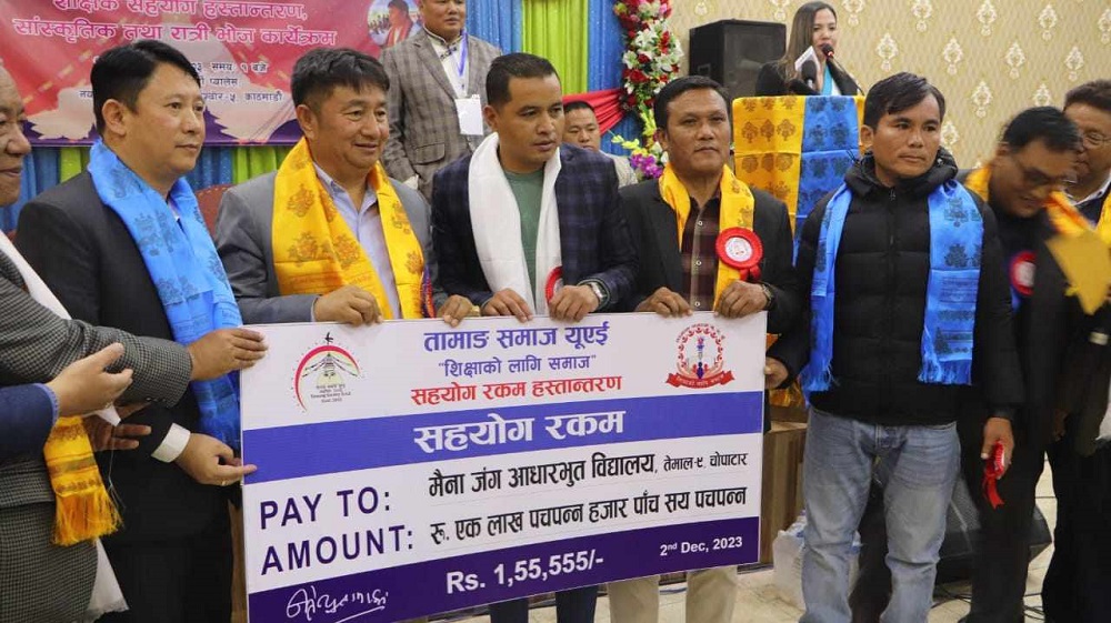 शिक्षाको लागि समाज नामको कार्यक्रम सञ्चालन गर्दै आएका उक्त समाजले प्रत्येक वर्ष विभिन्न विद्यालयहरुलाई आर्थिक सहयोग गर्दै आउने क्रममा यश पटक भने काभ्रे तेमाल गाउँपालिका वडा नं. ९ स्थित मैनाजाङ आधरभुत विद्यालयलाई नगद सहयोग गरेको छ ।