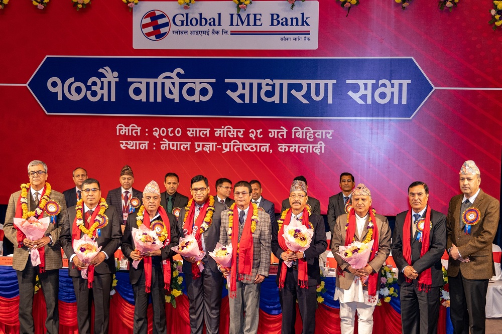 साधारणसभामा वार्षिक प्रतिवेदन प्रस्तुत गर्दै बैंकका अध्यक्ष ढकालले ग्लोबल आइएमई बैंक नेपाल सरकार एवं नेपाल राष्ट्र बैंकद्वारा घोषित नीतिहरुको परिपालना गर्दै आफ्ना शेयरधनीहरुलाई उचित लाभांश प्रदान गर्न कटिबद्ध रहेको बताए । उनले बैंकले आगामि दिनमा आफ्नो व्यावसायिक रणनीतिक योजना अनुरुप व्यवसाय विस्तारका अन्य क्षेत्रमा समेत सन्तुलित वृद्धि गर्दै जाने बताए ।