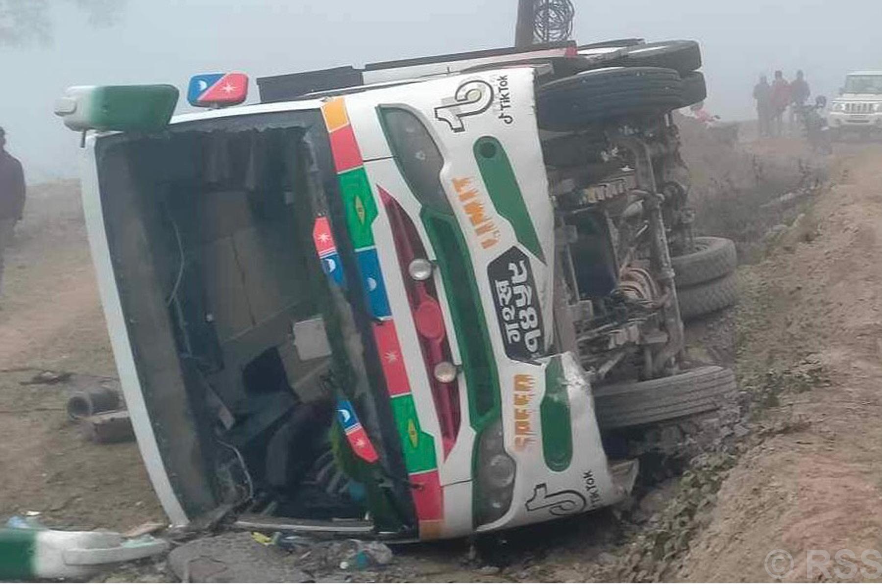 दमौली । मुग्लिनबाट पोखरा जाँदै गरेको बस तनहुँको व्यास नगरपालिका–१२ कमलबारीमा आज दुर्घटना हुँदा १८ यात्रु घाइते भएका छन् । ग२ख १४५९ नम्बरको बसले टिप्परलाई ‘ओभरटेक’ गर्ने क्रममा सडकबाट तल खस्न गई दुर्घटना भएको प्रहरी नायब उपरीक्षक मोहनबहादुर खाणले जानकारी दिए ।