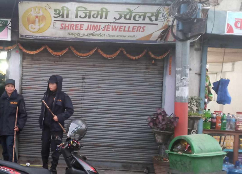धनकुटा । धनकुटा नगरपालिका–७, हुलाकटोलमा शनिबार राति एक सुन पसलमा चोरी भएको छ । जिल्ला अस्पताल अगाडि रहेको जिमी ज्वेलर्समा चोरी भएको हो ।