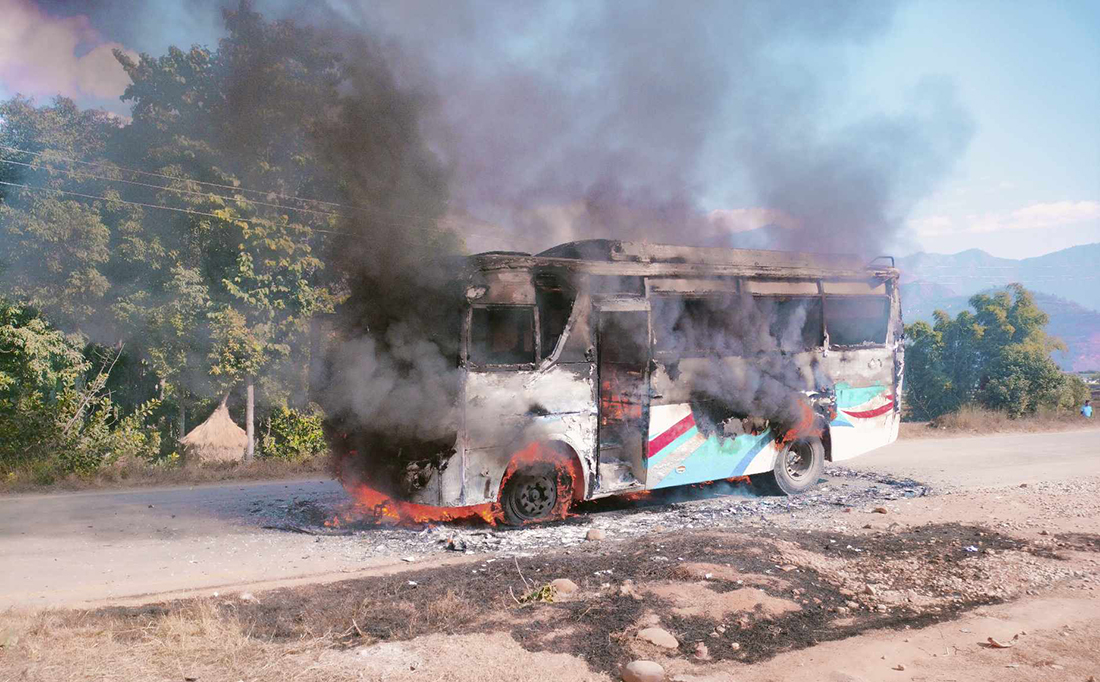 बसले मोटरसाइकललाई ठक्कर दिएपछि दुईजनाको मृत्यु भएसँगै आक्रोशित बनेका स्थानीयले बसमा आगजनी गर्दै सडक नै अवरुद्ध पारेका थिए । तर, दिउँसो १ बजेबाट अवरुद्ध सडक सञ्चालनमा आएको र कुनै अवरोध नरहेको प्रहरीले जनाएको छ ।