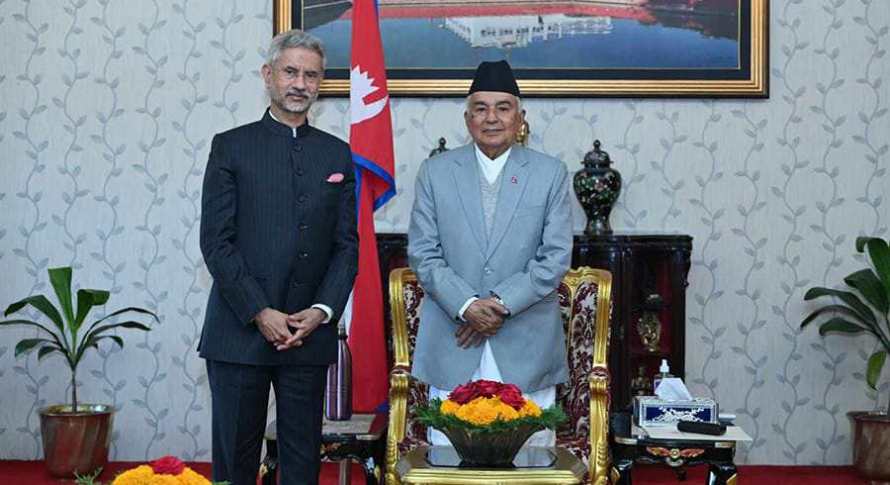 नयाँ दिल्लीबाट आज बिहान १० बजे मात्रै त्रिभुवन बिमानस्थलमा अवतरण गरेका भारतीय बिदेश मन्त्री जयशंकरले काठमाडौंको दुई दिने भ्रमणको क्रममा पहिलो भेटघाटको क्रममा राष्ट्रपति रामचन्द्र पौडेलसँग भेटबार्ता गरेका हुन ।