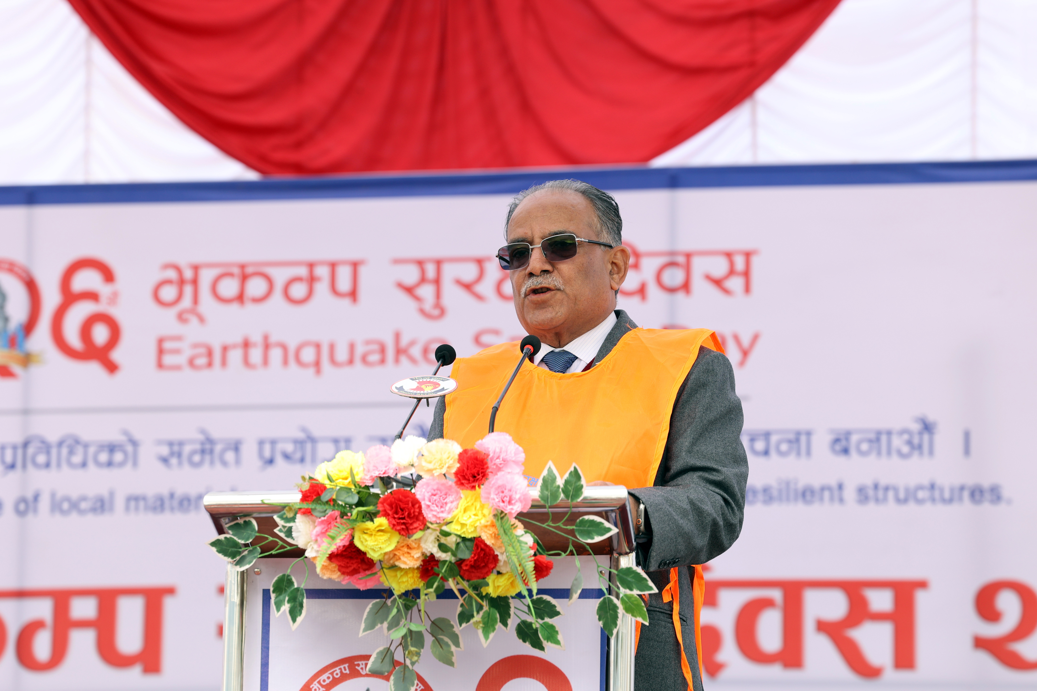 मंगलबार चन्द्रागिरि नगरपालिका–१४ स्थित फुटबल मैदानमा आयोजित २६औँ भूकम्प सुरक्षा दिवस मूल समारोहलाई सम्बोधन गर्दै प्रधानमन्त्री दाहालले विपद् व्यवस्थापन रणनीति प्रदेश र स्थानीय तहको नेतृत्व र सङ्घीय सरकारको संयोजन हुने गरी निर्माण गर्न लागेको समेत बताए ।