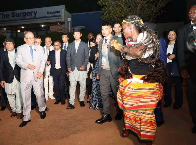 कम्पाला । असंलग्न राष्ट्रहरूको आन्दोलन (नाम)को उन्नाइसौँ सम्मेलनमा भाग लिन बिहीबार साँझ युगाण्डाको कम्पाला आउनुभएका प्रधानमन्त्री पुष्पकमल दाहाल प्रचण्डले युगाण्डामा रहेका नेपालीहरूसँग भेट गरेका छन्।