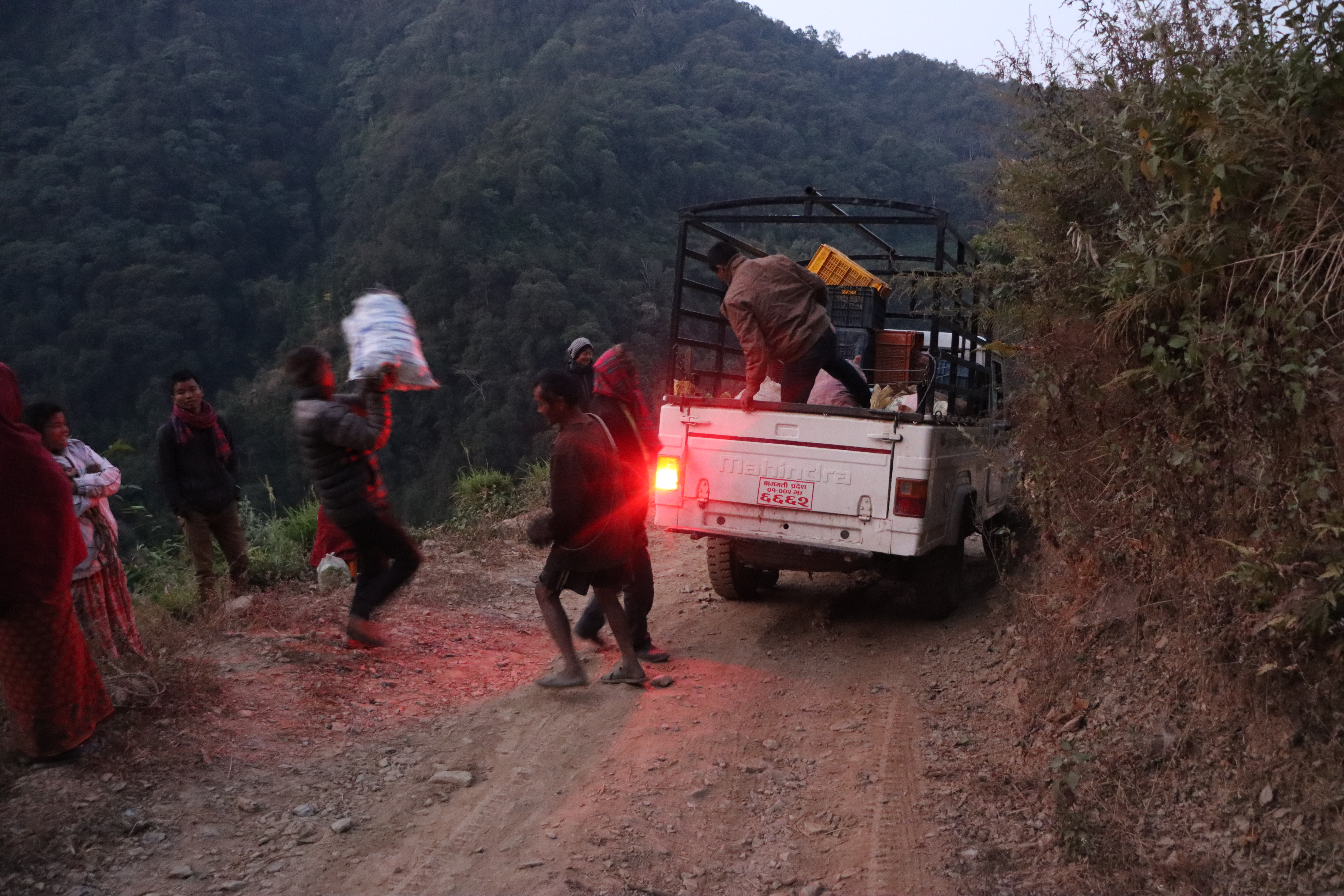 कृषि एम्बुलेन्स चालक दीपककुमार प्रजाले बिहानै ४ बजे उठेर हपनी, माझखर्क ओल्र्याङबाट किसानको तरकारी फलफूल र अन्य सामाग्री गाडीमा लोड गरेर फिस्लिङ, मौवाखोला, शक्तिखोर, टाँडीलगायतका बजारसम्म लैजाने