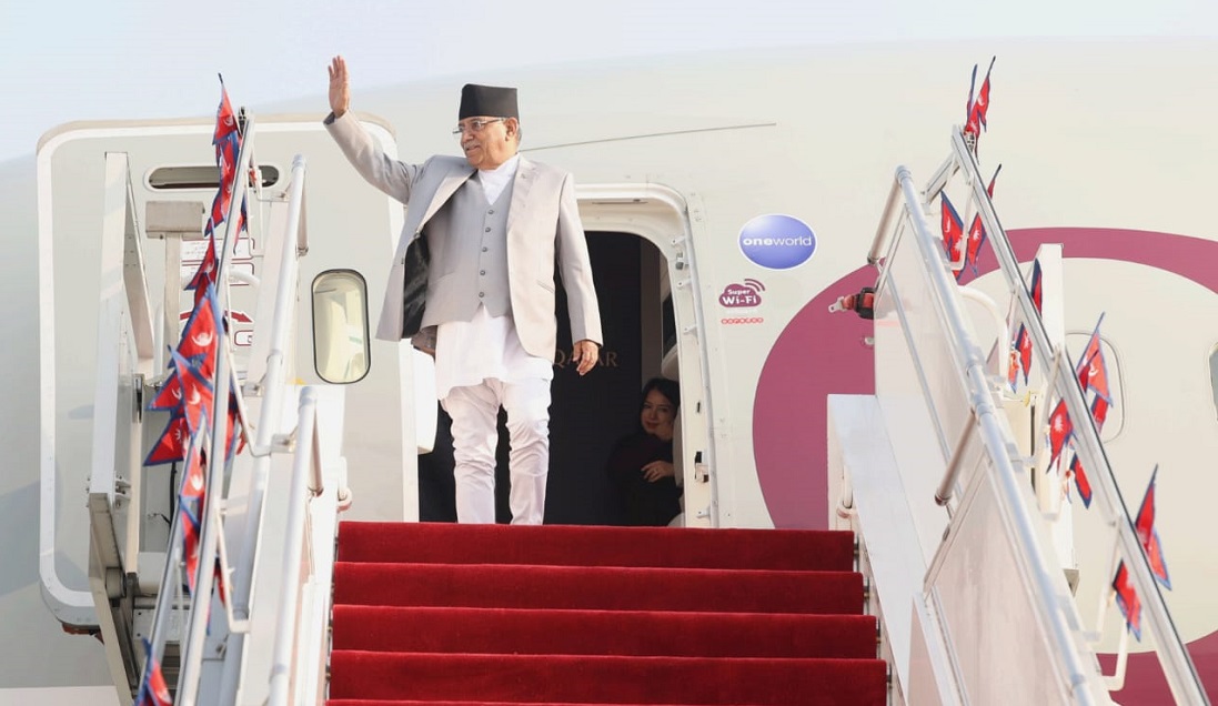 युगान्डाबाट उनी नेपाली समयानुसार बिहान २ः४५ बजे कतारको दोहा अवतरण गरेका प्रधानमन्त्री प्रचण्ड भर्खरै त्रिभुवन अन्तराष्ट्रिय बिमानस्थलमा अबतरण गरेका हुन ।