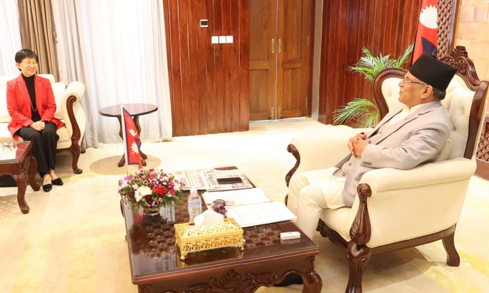 निशस्त्रीककरण मामिलासम्बन्धी संयुक्त राष्ट्र संघको निकाय युएनओडिएका तर्फबाट उच्चस्तरीय प्रतिनिधि मण्डल नेतृत्व गरेकी मिस इजुमी नाकामित्सु सहितको टोलीसँग भेटवार्ताका क्रममा प्रधानमन्त्री प्रचण्डले नेपालको शान्ति प्रक्रियाको उदाहरणीय रहेको बताउँदै विश्व शान्तिका लागि संवाद मात्रै एकमात्र विकल्प भएकोमा जोड दिए ।