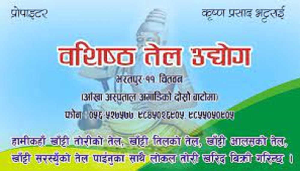 चितवन। तोरी उत्पादनमा अग्रणी जिल्ला चितवनको तोरीको तेल देशैभरि पुग्ने गरेको छ । बाटो प्रयोग गर्ने र यहाँ रोजगारी गर्नेदेखि उपहारका लागिसमेत तोरीको तेल देशैभर पुग्ने गरेको हो ।