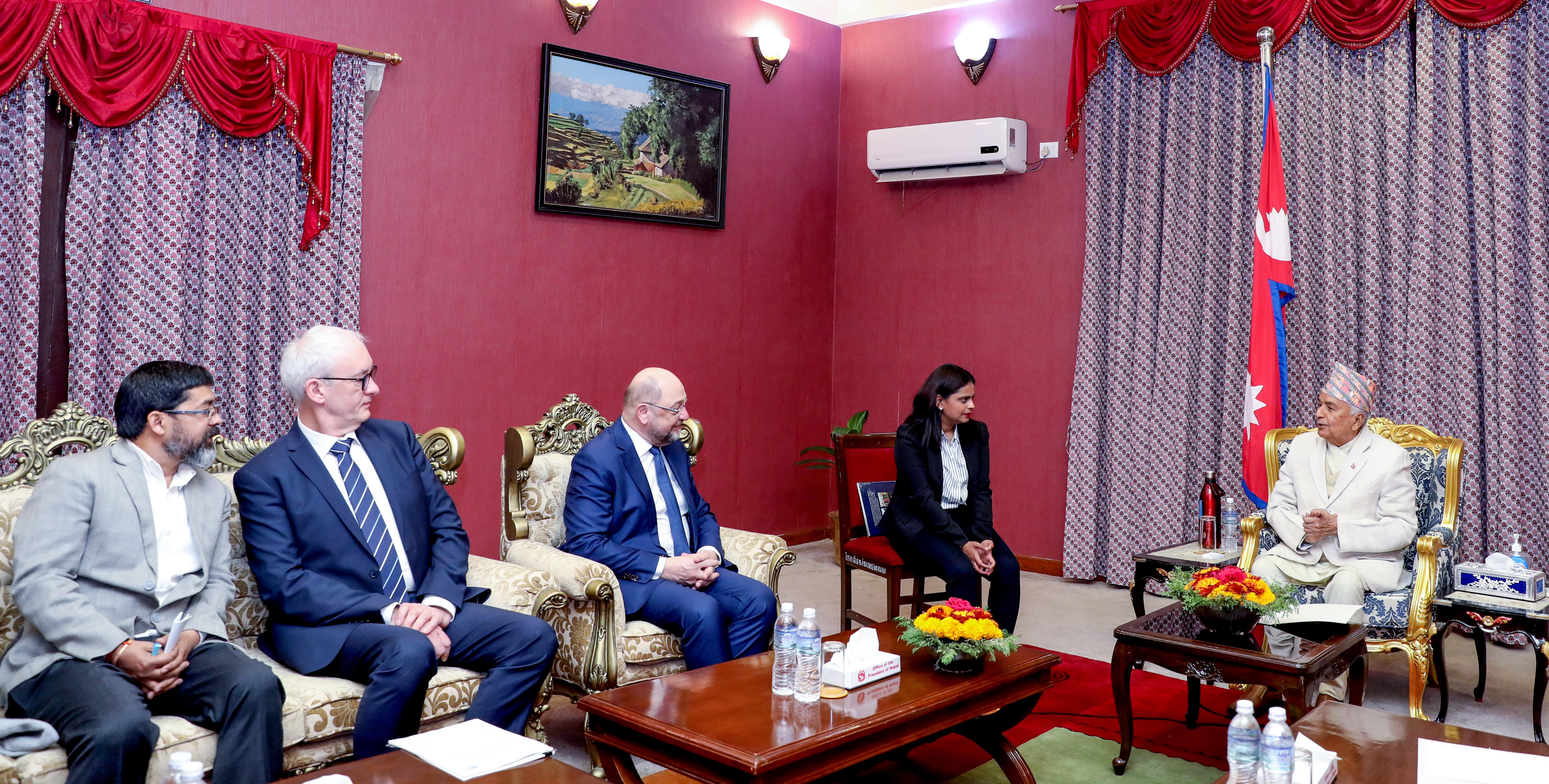 काठमाडौं । राष्ट्रपति रामचन्द्र पौडेलसँग नेपाल भ्रमणमा रहनुभएका जर्मनीको फेडरिक इवर्ट इस्टिफटुङ (एफईएस) का अध्यक्ष डा मार्टिन सुल्जले शिष्टाचार भेट गरेका छन् ।