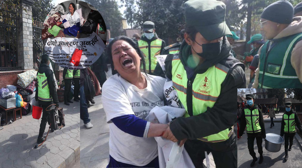 आज नगर प्रहरीले बिहानै शान्ति बाटिकामा अनशन र धर्नामा बसेकाहरूलाई लखेटेको थियो । त्यस क्रममा अरूसँगै आरती रावल पनि निकालिएकी थिइन् ।