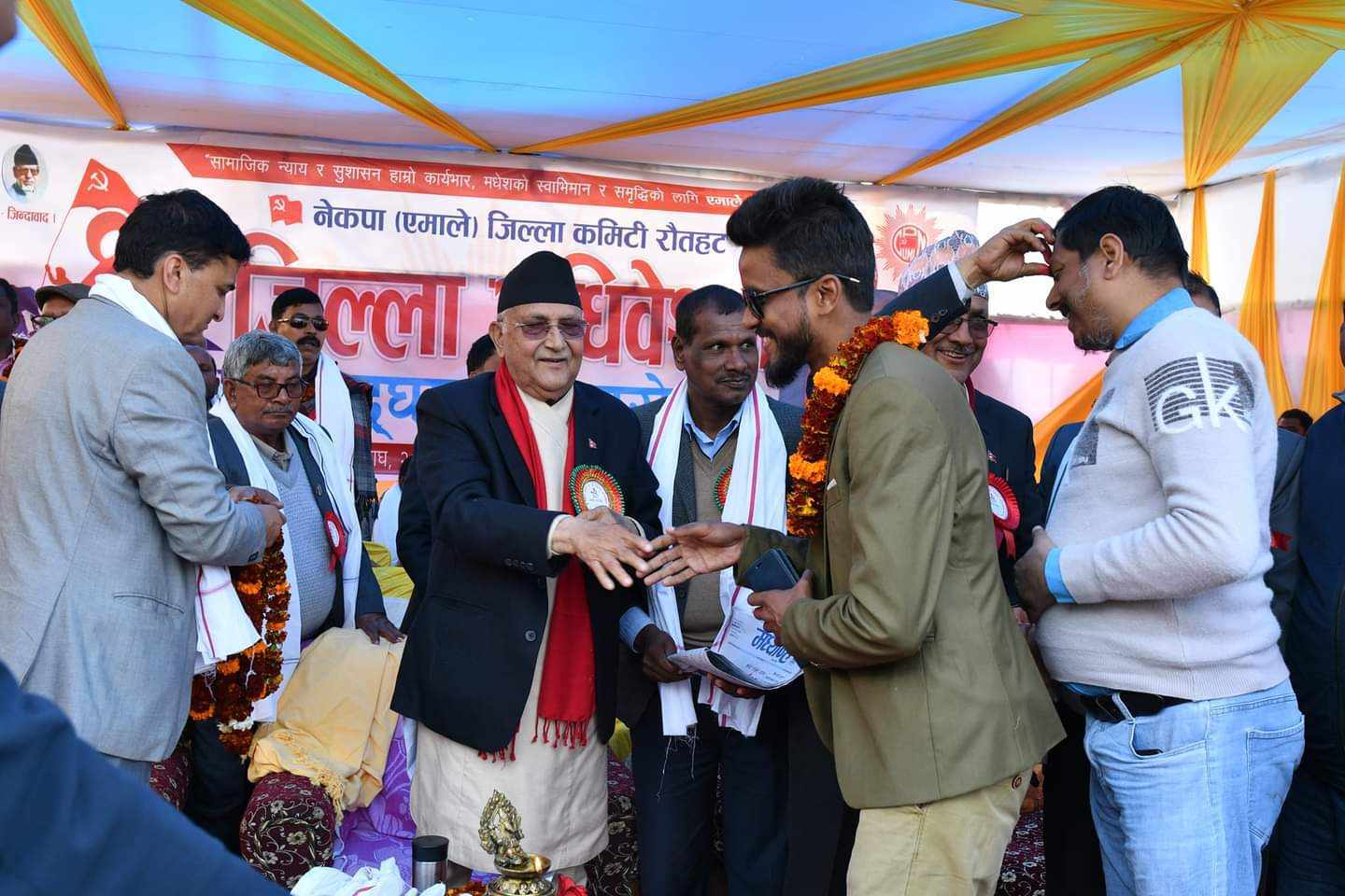 नवप्रवेसीलाई नेकपा एमालेका अध्यक्ष पूर्व प्रधानमन्त्री केपी शर्मा ओलीले टिका लगाएर स्वागत गरेका थिए।