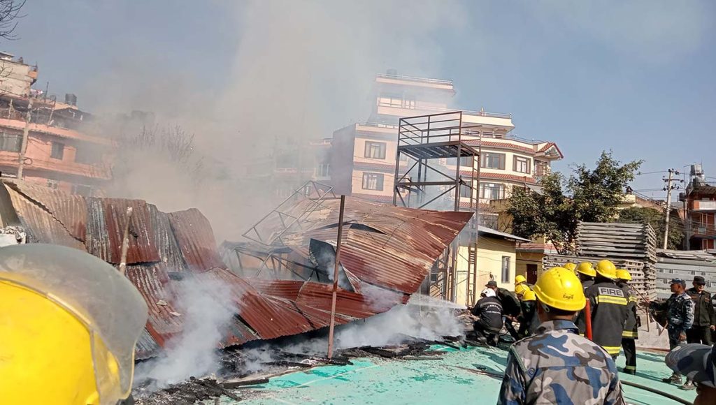 ‘नेपाल प्रहरी, सशस्त्र प्रहरी र महानगर टोलीले २० मिनेट भित्र आगलागी नियन्त्रण गरेको र क्षतिको विवरण नआइसकेको महानगरपालिकाको वारुणयन्त्र शाखाका प्रहरी निरीक्षक ध्रुव भुजेलले भने ।