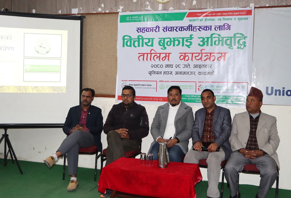 बागमती प्रोस्कूनको आयोजना, राष्ट्रिय सहकारी बैंकको प्राविधिक सहयोग र नेपाल सहकारी पत्रकार समाज (सिजेएन)को व्यवस्थापनमा भएको ‘सञ्चारकर्मीहरुका लागि वित्तीय बुझाई अभिवृद्धि तालिम’मा बोल्दै उनले कोरिया लगायतका कतिपय देशहरुले सहकारीमा समस्या आउँदा सरकारले सहयोग गरेको बताए ।