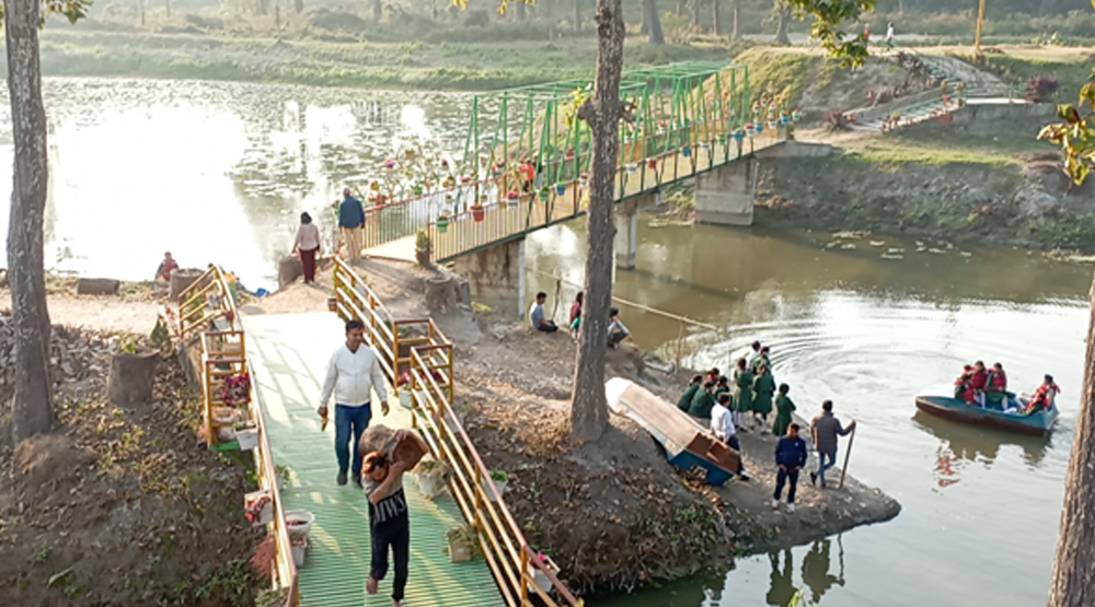 झापा । झापाको मेचीनगर नगरपालिका–१३ स्थित हातेमालो सामुदायिक वनले निचाझोडा सिमसार क्षेत्रलाई व्यवस्थित गरेर निर्माण गरेको तालमा पर्यटकीय आकर्षण बढेको छ ।