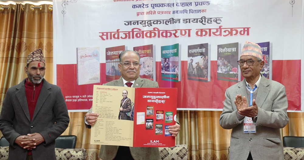 काठमाडौं । पत्रकार मनऋषि धितालका आधा दर्जन जनयुद्धकालिन पुस्तकहरु एकसाथ सार्वजनिक गरिएको छ । राजधानीको प्रज्ञा भवनमा एक कार्यक्रमको आयोजना गरी धितालले लेख्नुभएका जनयुद्धकालिन डायरीहरुको संगालोहरु समेटिएका आधा दर्जन पुस्तकहरु एकैसाथ सार्वजनिक गरिएको हो ।