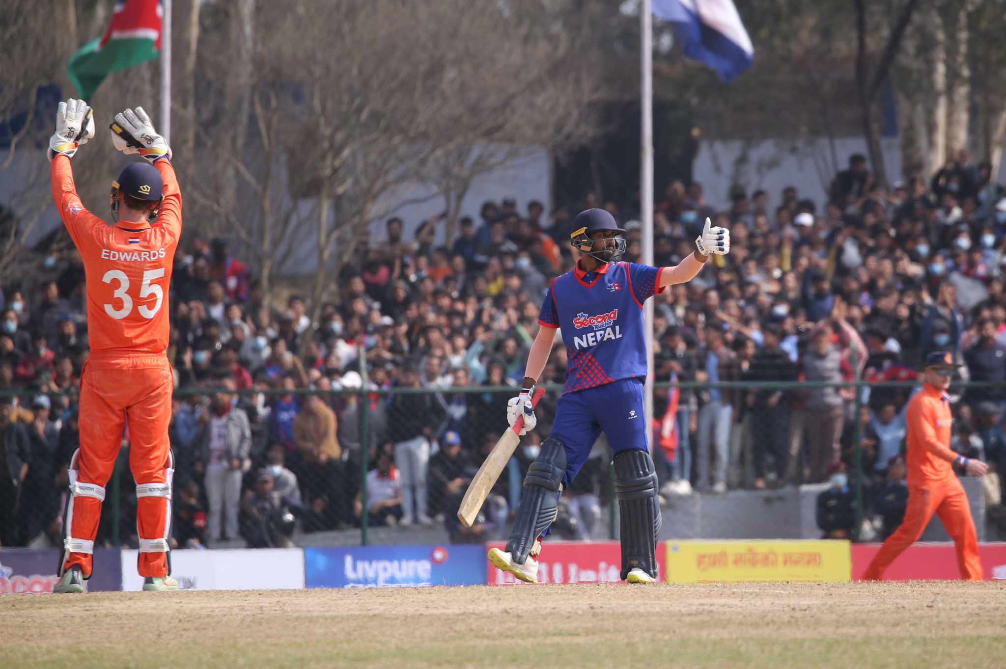 जारी प्रतियोगिताको पहिलो खेलमा नामिबियासँग चार विकेटले पराजित भएको नेपाल आजको खेलमा नेदरल्याण्ड्समाथि हावी भयो ।