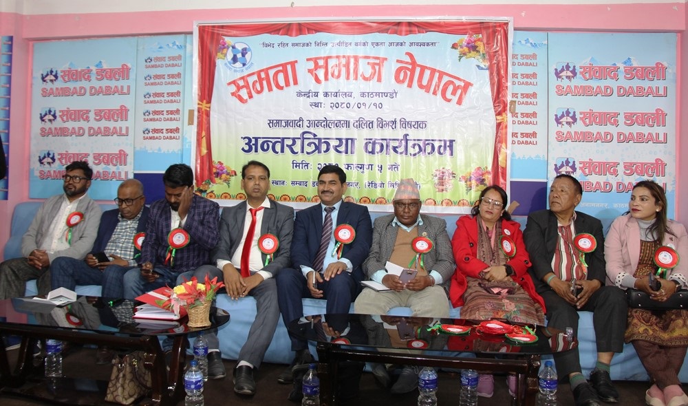 काठमाडौं । समुदायले अझै पनि उत्पीडनको जाँतोबाट मुक्त हुन देशका सबै दलित एकजुट भएर निर्णायक लडाईको आवश्यकता भएको वक्ताहरुले धारणा राखेका छन् । शनिबार राजधानीको संवाद डबलीमा समता समाज नेपालले समाजवादी आन्दोलनमा दलित विमर्श बिषयक अन्तरक्रिया कार्यक्रममा बोल्ने वक्ताहरुले ६० लाखको विशाल बाहुल्यता भएको दलित समुदाय एक हुने सुत्र खोज्नुपर्नेसमेत बताए ।