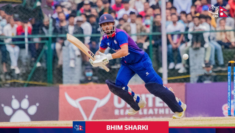 उनी बास डी लिडेको बलमा खराब सट खेल्दै बोल्ड हुन पुगे । टस हारेर पहिलो ब्याटिङ गरेको नेपालले नेपालले २९.३ ओभरमा ६ विकेटको क्षतिमा ९४ रन बनाएको छ ।