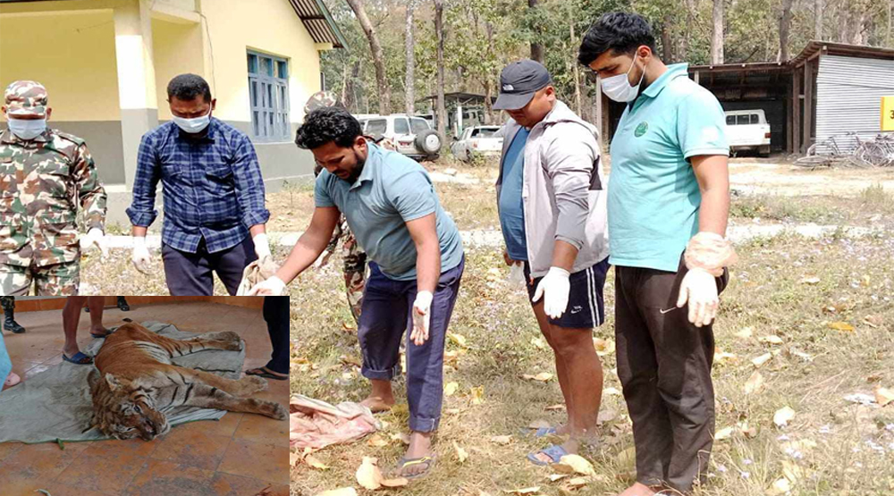 मृत्यु भएको बाघलाई कार्यालय प्राङ्गणभित्रै खाल्डो खनेर गाडिएको छ । पर्सा राष्ट्रिय निकुञ्जमा ३ वर्षको अन्तरालमा ४ वटा वयस्क बाघले ज्यान गुमाईसकेका छन् ।