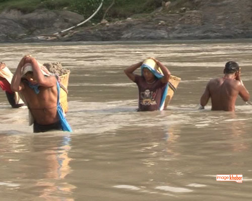 \"sand\"म्याग्दी । बेनीमा गरिब र विपन्न मजदुर म्याग्दी र कालीगण्डकी नदी किनारमा बर्खे भेलमा जोखिम मोलेर बालुवा निकाल्न बाध्य छन् । हिउँदको कठ्याङ्ग्रँदो चिसोमा होस् वा उर्लदो बर्खे भेलमा ज्यानको जोखिम मालेर झिकेको बालुवालाई ठेकेदारलाई घटी घटाउमा बेच्नु उनीहरुका लागि अर्को बाध्यता बनेको छ । बर्खामा बेनीवासीका लागि सधैँ डर र त्रासको कारण बनेका म्याग्दी र कालीगण्डकी नदी धेरै विपन्न परिवारका लागि भने जीविकोपार्जनको स्रोत बनेको छ । दिनभर चिसो पानीमा डुबेर झिकेको बालुवा बेचेर छोराछोरीलाई स्कुल पढाएको म्याग्दी नदी किनारमा बालुवा निकाल्दै गरेकी फूलमाया भण्डारीले बताइन । उनले परिवारका तीन जनाले एक दिनमा दुई ट्र्याक्टरसम्म बालुवा निकाल्छन् । आफूले नपढे पनि छोराछोरीको शिक्षा र खुसीका लागि दुःख बिर्सिएको भण्डारीको भनाइ छ । बेनी बजार क्षेत्रमा पर्ने दुईवटै नदी किनारमा दैनिक ३० जनाको हाराहारीमा मजदुरले बालुवा निकाल्ने काम गर्दै आएका छन् । छाक टार्नलाई बालुवा झिक्दैमा जीवन बिते पनि पेट कहिल्यै नभरिएको ६० वर्षीया मजदुर हरिमाया पुनको भोगाइ छ । धेरै मजदुरको बालुवा झिक्दाझिक्दै नदीसँगै आशा र भविष्य भाँसिएको छ । उनीहरुले झिकेको बालुवाले बजारमा महल बनेका छन् । त्यही डेरा गरेर रात गुजार्ने मजदुरको दिनचर्या फेरिएको छैन् । बिहानदेखि बेलुकीसम्म नदीको भेलसँगै जीवन धकेलिरहेका मजदुरलाई जहिल्यै गाँस, बाँस, कपास र छोराछोरीको पढाइको चिन्ता छ । यही पेसाले उनीहरुका बालबालिकाले पढ्न पाएका छन् । उमेरमा शिक्षा हासिल गर्न नपाएका मजदुर उपयुक्त सीपमूलक तालिम र रोजगारीको अन्य अवसर नहुँदा नदीमा जोखिम मोलेर बालुवा झिक्न बाध्य भएको बताउँछन् । दुःख गरेर झिकेको बालुवालाई सस्तोमा बेच्नुपर्दा र ठेकेदारले समयमा पैसा नदिँदा उनीहरु समस्यामा पर्ने गर्छन् । करिब तीस बेल्चा बालुवा झिक्दा एक बोरा भरिन्छ । पचास बोरा राखेपछि  एक ट्र्याक्टर हुन्छ । खस्रो बालुवाको तीन हजार र मसिनोको दुई हजार मूल्य पर्छ । झिकेर खोलाको छेउमा थुपारेको बालुवा तुरुरु पानी झार्दै सडकसम्म ल्याएर ट्र्याक्टरमा चढाएपछि बल्ल उनीहरुको हातमा दुईतीन हजार पर्छ ।