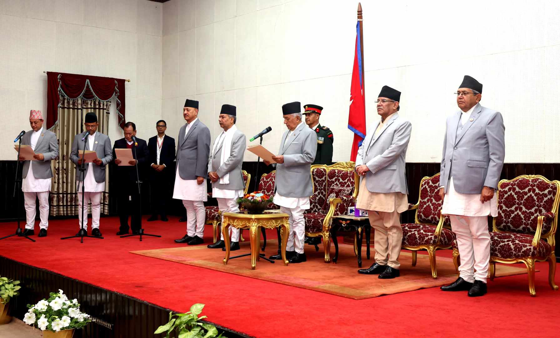 राष्ट्रपति भवन, शितलनिवासमा बिना विभागीय मन्त्रीहरू हितबहादुर तामाङ, पदम गिरी र डोरप्रसाद अर्यालले पद तथा गोपनीयताको सपथ लिएका हुन् ।