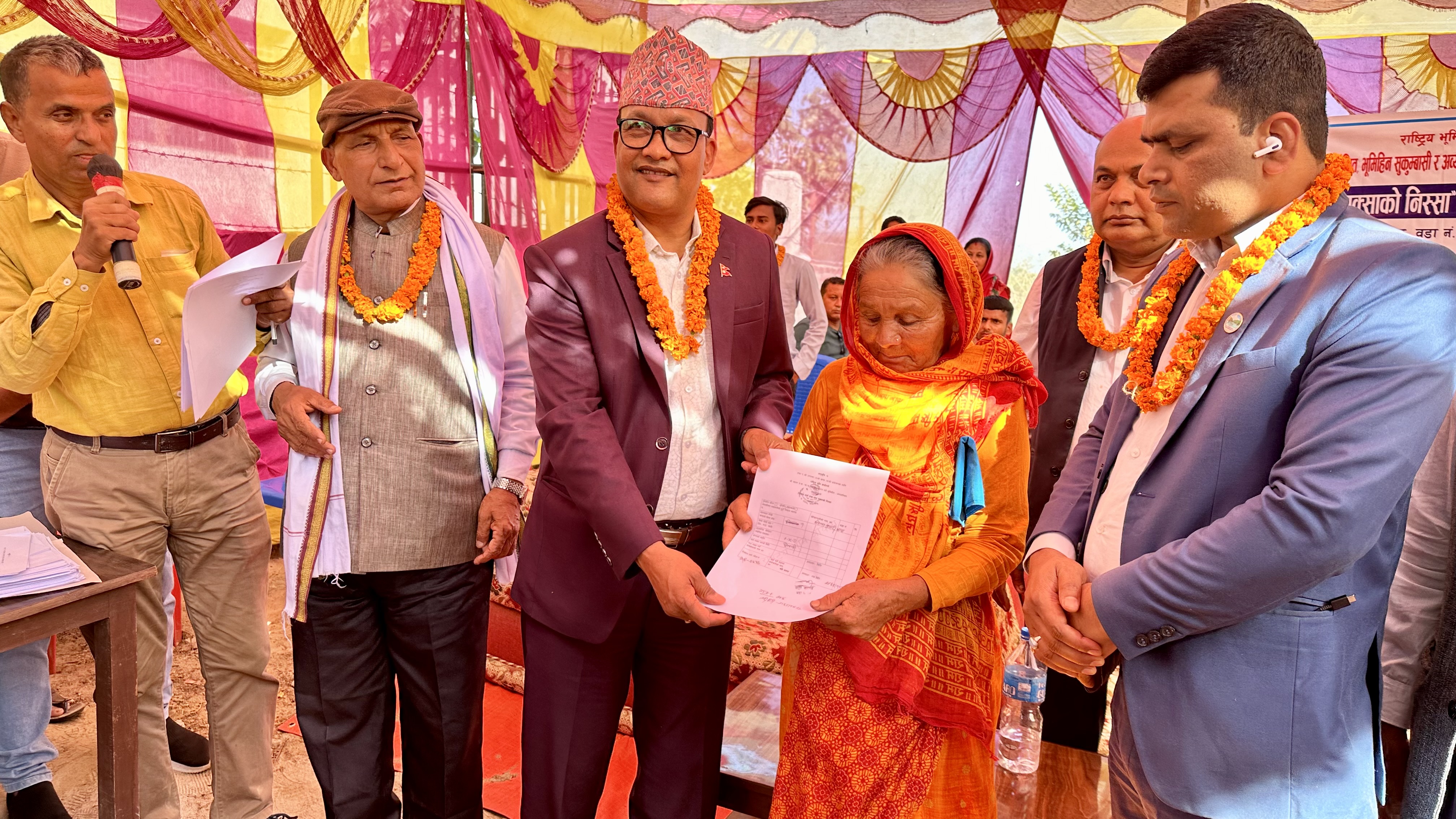 लहान नगरपालिकाको पहलमा भूमिहीन दलित, भूमिहीन सुकुम्बासी तथा अव्यवस्थित बसोबासीलाई जोतभोगका आधारमा जग्गाधनी दर्ता प्रमाणपुर्जा (लालपुर्जा)का लागि वितरण गरिएको निस्सापत्र प्राप्त गरेपछि उनका मुहारमा खुसी छाएको हो ।