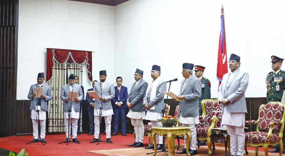 काठमाडौं । सरकारका नवनियुक्त मन्त्रीले पद तथा गोपनियताको शपथ लिएका छन् । शीतल निवासमा आयोजित विशेष समारोहमा राष्ट्रपति रामचन्द्र पौडेलले उनीहरूलाई शपथ ग्रहण गराएका हुन् ।