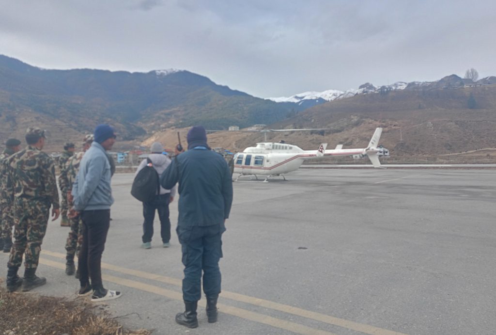 जुम्ला । जुम्लाको तातोपानी गाउँपालिका– ४ स्थित गिडीदह क्षेत्रमा पर्ने बजेडी पाटनमा जडीबुटी सङ्कलन गर्न गएका सोही गाउँपालिका–७ बाँरागाउँ र मुछालदेउ गाउँका स्थानीयवासी हिउँमा फसेपछि हेलिकप्टरबाट उद्घार गरिएको छ ।