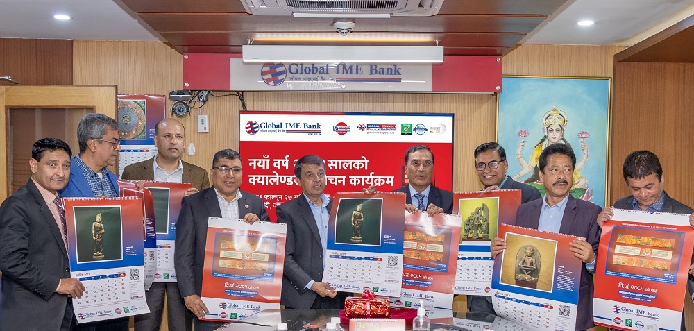ग्लोबल आइएमई बैंक तथा नेपाल उद्योग वाणिज्य महासंघका अध्यक्ष चन्द्रप्रसाद ढकालले बैंकको कर्पाेरेट कार्यालय, कमलादीमा आयोजित एक समारोहबिच नयाँ सालको क्यालेन्डर सार्वजनिक गरेका हुन् ।