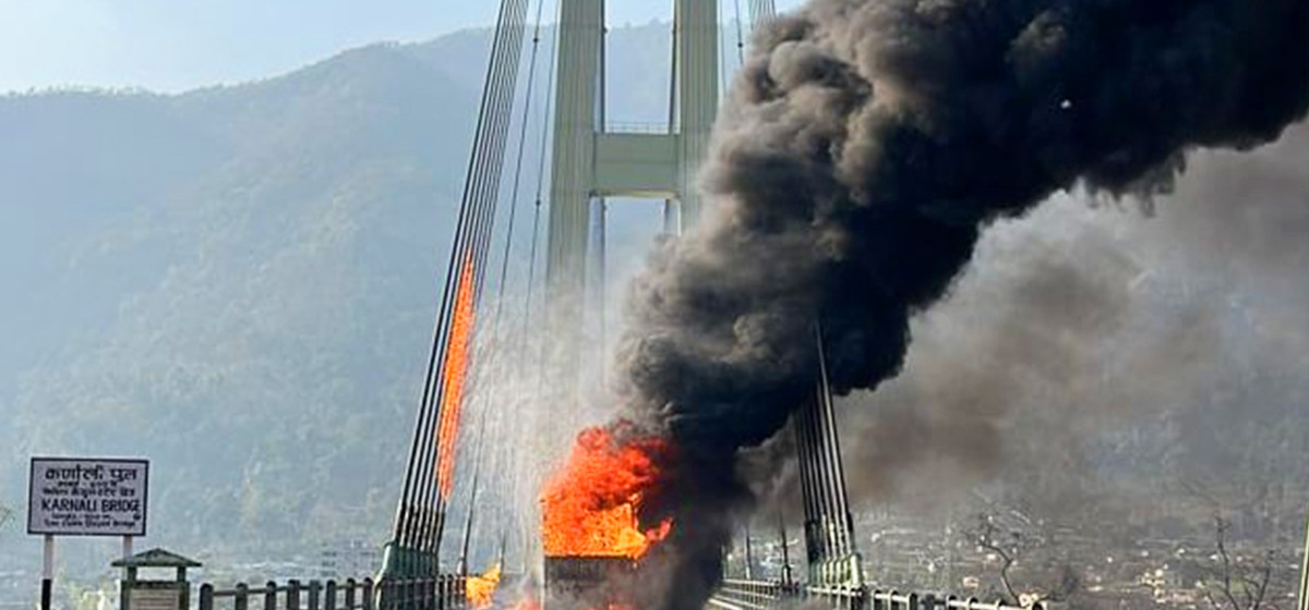 कैलाली । सोमबार भएको आगलागीबाट आंशिकरूपमा क्षति भएपछि कर्णाली पुलमा सवारीसाधन आवागमन बन्द गरिएको छ । प्राविधकको विशेषज्ञ टोलीले पुलको परीक्षण गरेरमात्र सवारी आवागमन सञ्चालन गर्न सकिने सडक डिभिजन कार्यालय नेपालगञ्जले जनाएको छ । आगलागीबाट पुलको १४ ‘सपोट’ डोरीमा आंशिक क्षति पुगेको छ ।